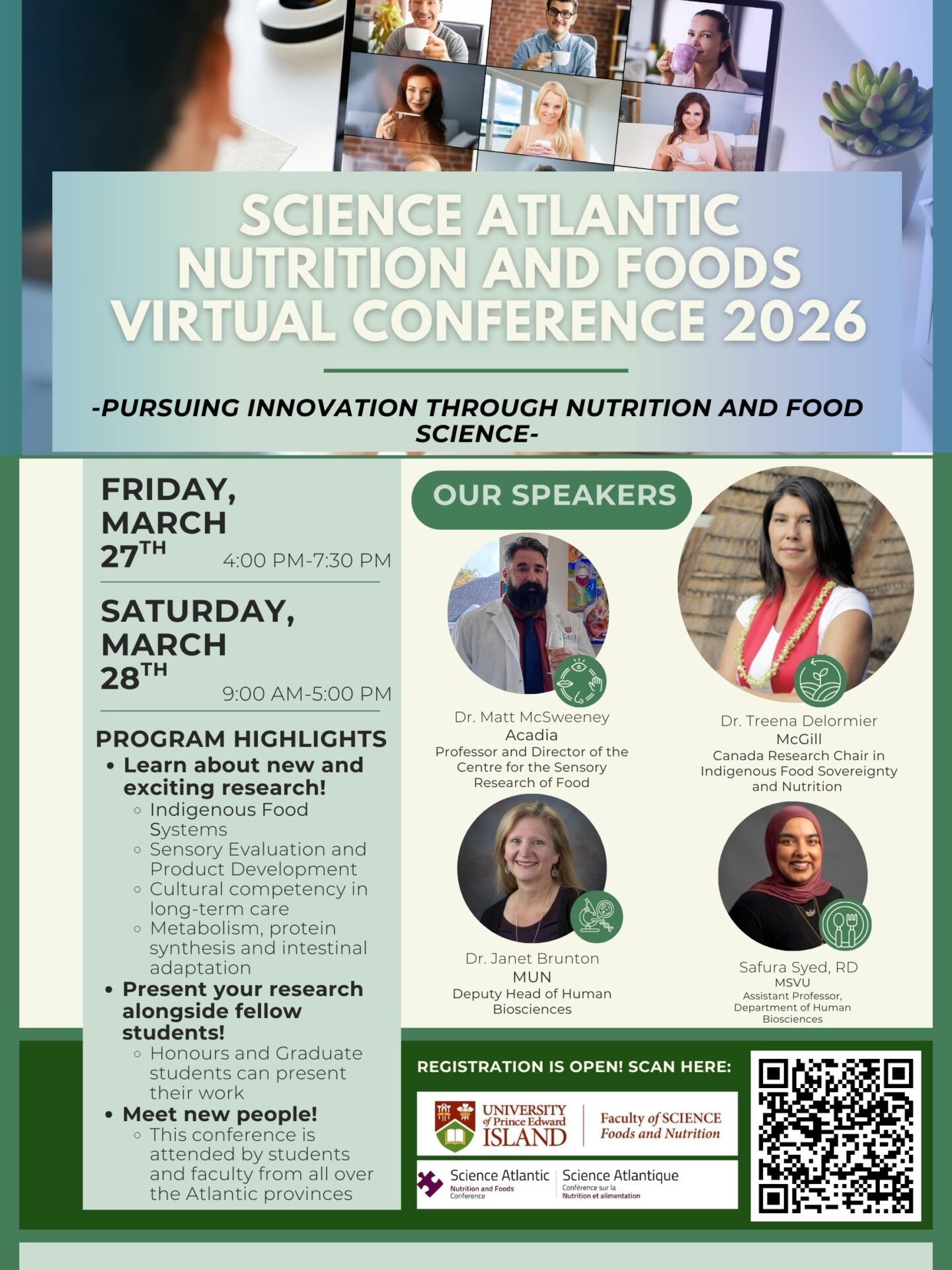 The 2026 Science Atlantic Nutrition and Foods Conference (SANFC) will be held online on March 27 and 28.