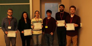 As you may know, we are fortunate to present awards to students for outstanding work. This year’s AUPAC winners include Veronika Dornan (The Tindall/Steinitz Award in Research), Bradley Guislain (The Tindall/Steinitz Award in Research), Sophia Waddell (Science Atlantic Communication Award), Grant Wilbur (Honourable Mention for Oral Presentation) and Ryan Harvey (Honourable Mention for Oral Presentation).