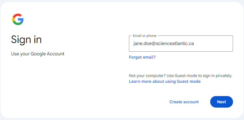 Step 3. Enter your Science Atlantic ID (usuallly firstname.lastname@scienceatlantic.ca)